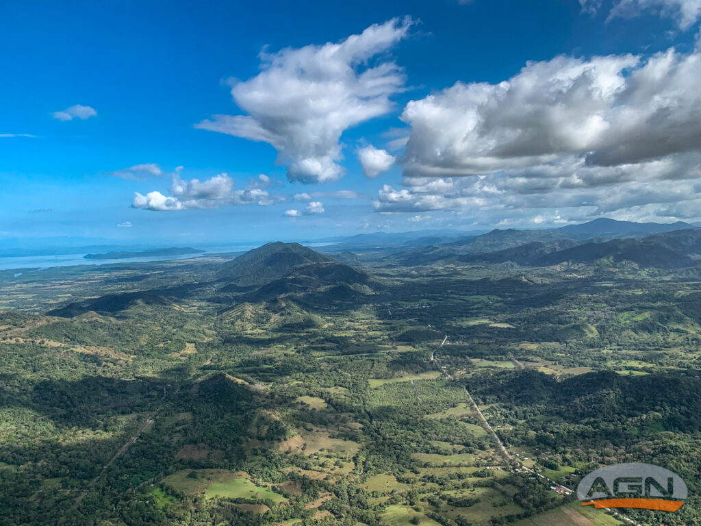 Potom míříme kolem sopky Rincon de la Viecha v pohoří cordilera de Guanacaste. Vrcholky sopky i okolních kopců jsou v mracích, takženakonec pokračujeme kolem jezera Nikaragua po hranicích stejnojmenného státu až na letiště Los Chiles MRLC.