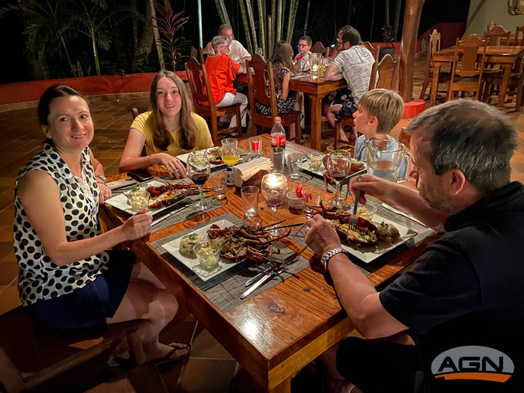 Odpoledne při příletu bylo zataženo, snad nás ráno pustí oblačnost nad sopku (nebo alespoň proletět nad jezerem Laguna de Arenal na tichomořskou stranu). V pohodě prolétáme a dostáváme se na slunečnou a vyhřátou stranu Kostariky. Hodinu potom kopírujeme pobřeží, abychom čtyřdenní putování završili vychlazeným pivem na domácím letišti MRMR Flying Crocodile. Konečně jsme tedy viděli karibskou část, která pro nás byla doposud tajná jako paní Kolombová. Je výhoda být na místě, kde je o 7 hodin méně a slavit česky Silvestr ( jsme přece Češi ne?) už v 5 hodin odpoledne. Mě osobně tato verze opravdu vyhovuje. Chodím spát se slepicemi a vstávám dřív než kohouti. Na večeři máme specialitu místního kuchaře studeného humra s teplou omáčkou (touto kombinací a dalšími verzemi se bavíme zbytek celého pobytu). Takže po večeři mohu v 8 v pohodě na kutě a ráno za svítání už běhám po pláži a koupu se v moři. Tak nějak si představují Nový rok. Potom do bazénu a po výborné a dlouhé snídani na výlet vírníkem. Třeba jenom kousek kolem pobřeží a pak přes hory do vnitrozemí na oběd do Nicoye MRNC. Prvního ledna je jediný den, kdy je vše zavřeno. Takto prázdné ulice jsem na Kostarice ještě neviděl. Vsázeli jsme na stánky na autobusovém nádraží kousek od letiště. Místní tady mají bufítky s domácími jídly. Dobroty jako od kostarické babičky. Takže nás zachraňují Číňani ( ti nemají zavřeno nikdy).