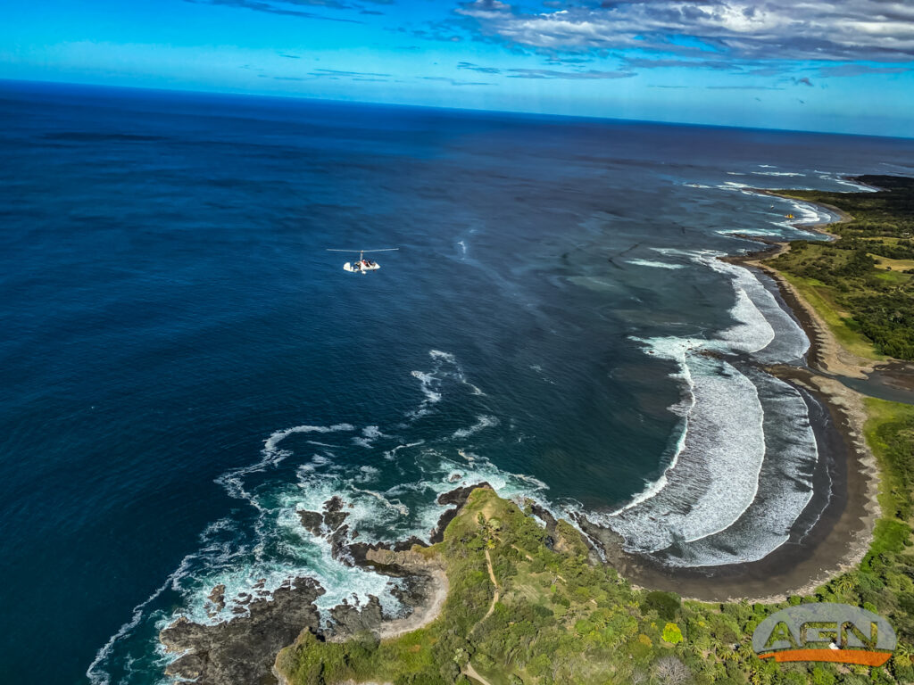 Tak i tady po snídani nasedám sám do vírníku, tankuji po hrdla, podávám si plánek na dvě hodiny letu a pouštím do sluchátek audioknihu. Vydávám se podél pobřeží a střídám výšku metr nad vodou a 300 metrů nad útesy. Mávám surfařům a pozoruji želvy a manty u pobřeží. Užívám si svobodu letu a těším se na všechny budoucí výlety. Taky přistávám na všech letištích u moře , kde jsem ještě nebyl a zkouším i plochy, které jsou sice označené, ale některé léta nepoužívané.
