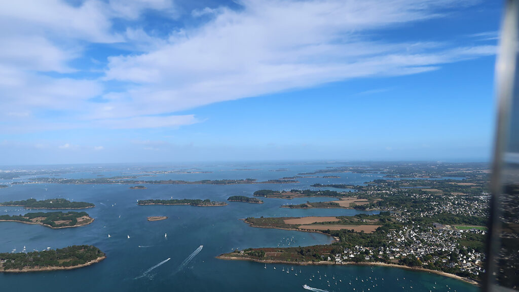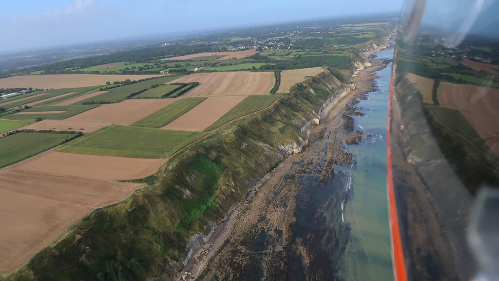 Kolem Le Mans do Caen už to bylo jen asi 200 km a všichni byli natěšení na třetí etapu historie – vyloďovací pláže v Normandii. Ty nás čekaly následující den a přes úvodních několik mráčků jsme pořídili úžasné fotografie. Koneckonců ani ocelové světlo na fotkách není na tomto místě od věci. Moře lákalo ke vzdálení se od břehů, ale formace byla naštěstí jakž takž zachována. Pláže jsme proletěli všechny – Sword, Juno, Gold, Omaha i Utah – a udělali si představu o probíhajících událostech. No a aby historie nebylo málo, vzali jsme cestou i menhiry v Carnacu. Foukalo docela silně od moře a tzv. „na komoru“, takže jsme mohli letět rychlostí vůči zemi asi 40 km/hodinu a kamenná pole pomalu defilovala pod námi. Otočka o 180 a hurá na pobřeží. Otevřel se nám neskutečný pohled na stovky ostrovů a ostrůvků se zpěněnými brázdami za motorovými jachtami a s bílými odrazy od plachet místních námořníků. Spouště cvakaly a karty se plnily kýčovitými obrázky…