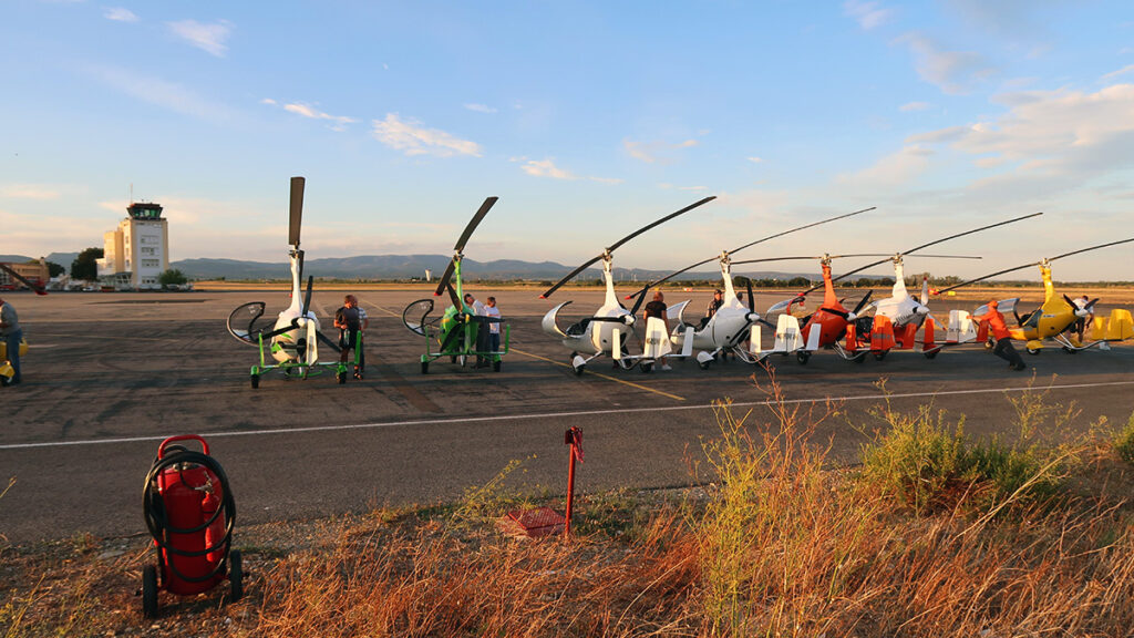 Mezipřistání na letišti v Brive (tak trochu mezi lesy, ale dráha dlouhá i pro Ryanair), doplnění AVGASu do nádrží a občerstvení do žaludků. Tři krásná mladá děvčata jako z pohádky nás doprovázela zpět na plochu, abychom prý dobře trefili. Start a po asi hodině letu jsme se ocitli u CTR Carcassone. „Bez známého provozu“, hlásil řídící, a tak jsme se dovolili o průlet kolem hradeb tohoto úžasného města. V zapadajícím slunci a měkkém světle jsme se seřadili a defilovali z jižní strany. Letiště na dohled (leč bez paliva ) a odměna řídícímu nízkým průletem. Jeho nadšený hlas („Guys, your machines are really beutifull, many, many thanks for low pass“). Kdy taky uvidí takovou spoustu vírníků v lajně za sebou, že. Přistání v nedalekém Perpignanu proběhlo jako obvykle bez problémů, byť tankování už bylo za tmy. Letištní ochranka nám zatkla jedinou kolegyňku, která se zapomněla a trochu se mezitím prošla po taxi . No, je třeba prověřit bdělost francouzských strážců. Žádná lapálie z toho nebyla a my jsme mohli skončit všichni v hospodě na pivu a jídle…